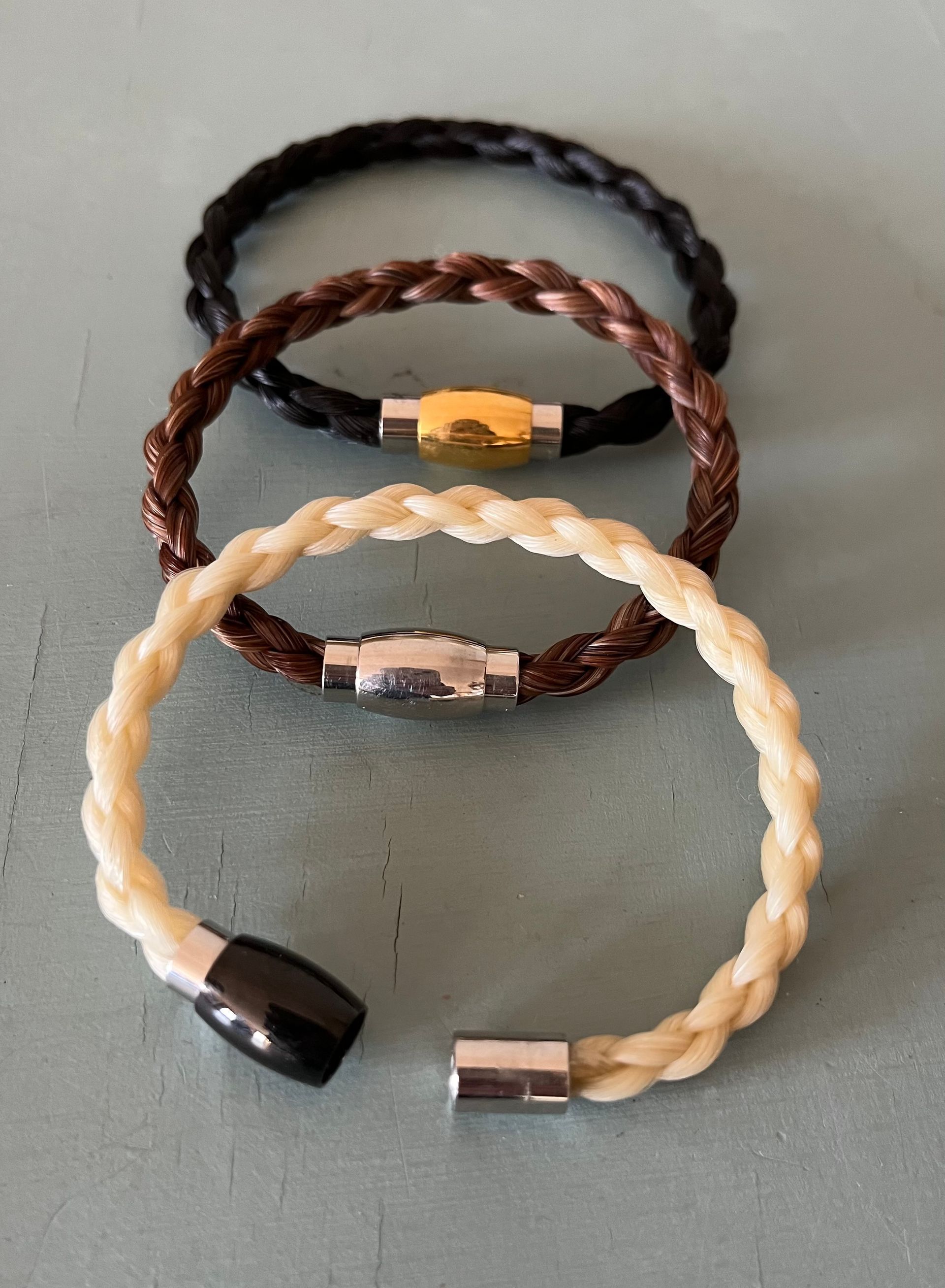 Double wrapped braid, finished with a sterling silver clasp that expresses your forever love for your equine friend. ($90)