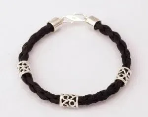 Sterling Silverbeads & Clasp - Braid is embellished with three sterling silver Pandora-style beads, swirled with a symbol of eternal love ($120)